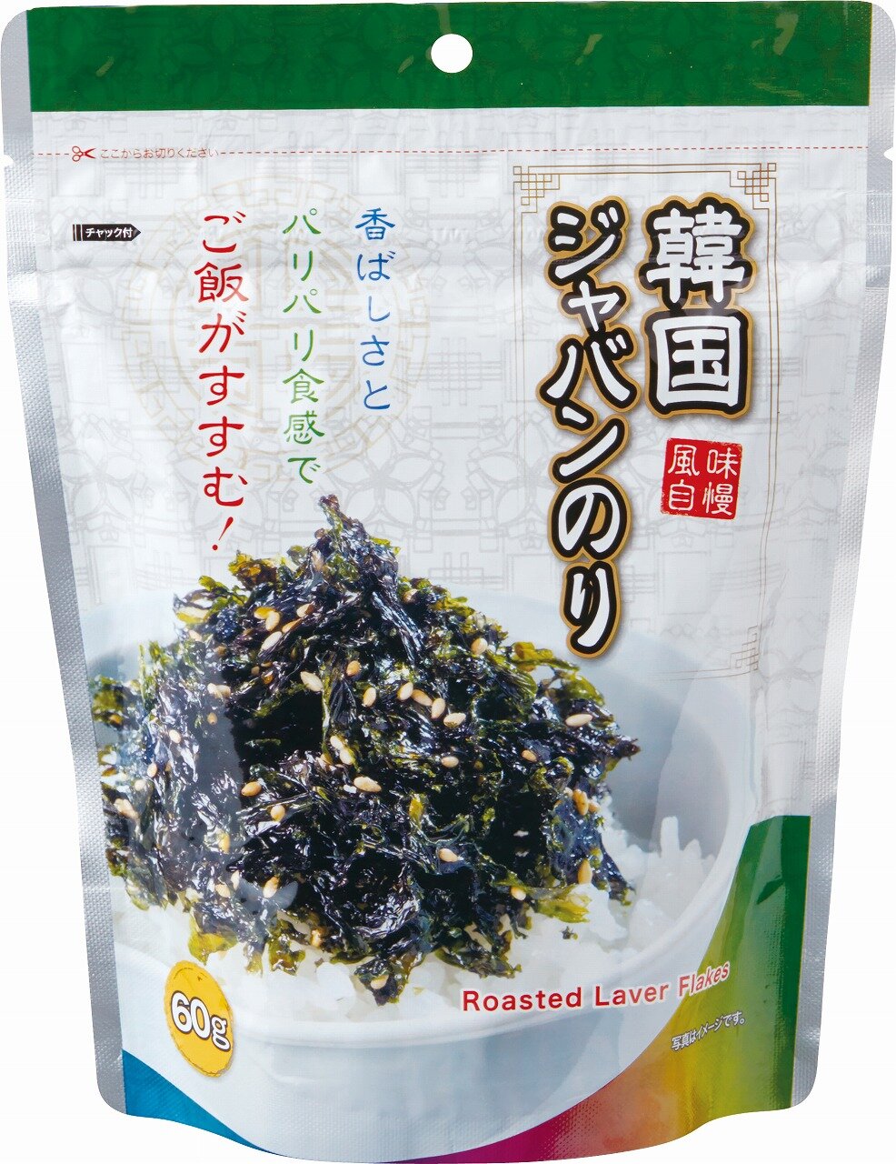 えごま油の香りとほどよい塩加減が美味しい韓国ジャバンのりです。香ばしさとパリパリ食感でご飯がすすみます。